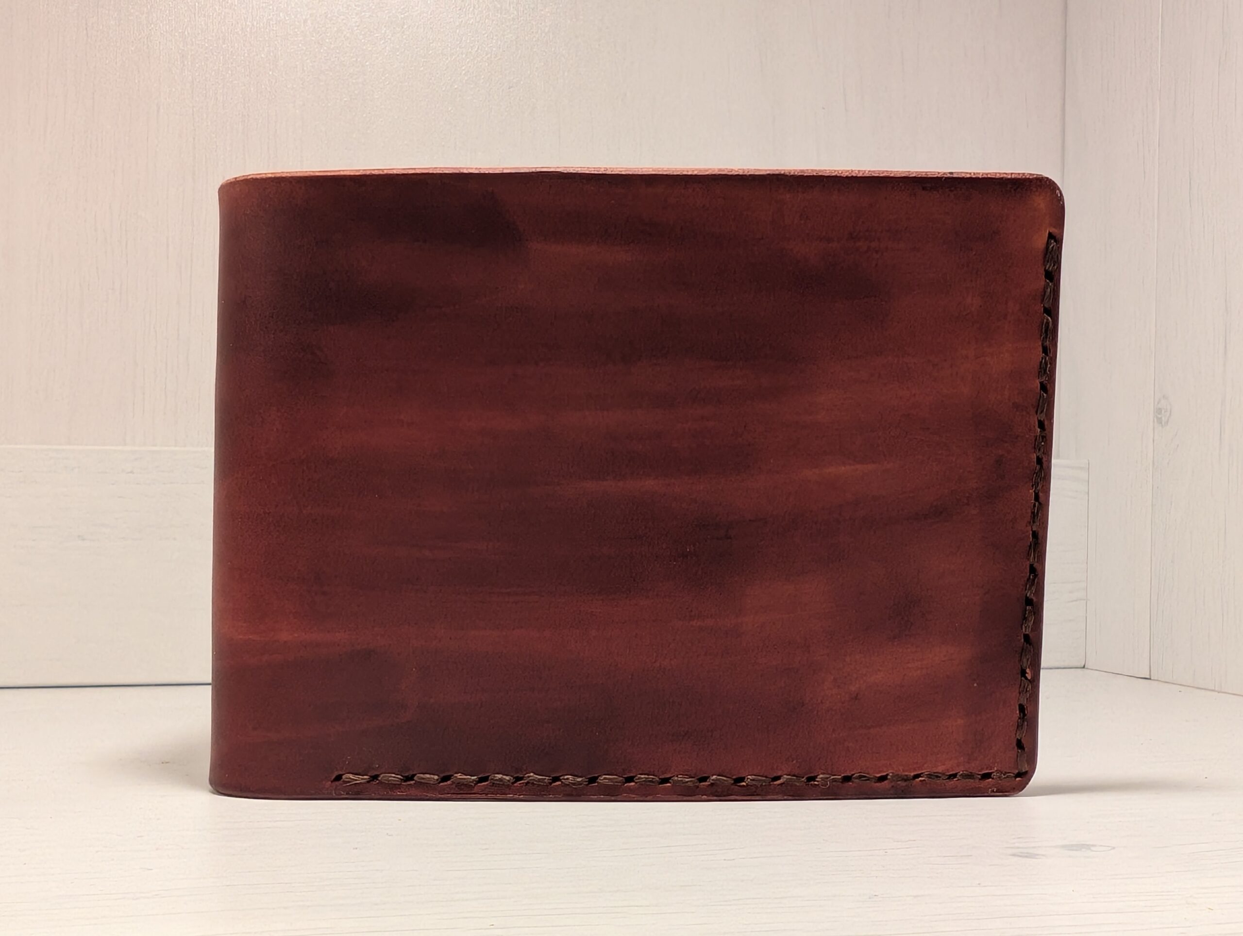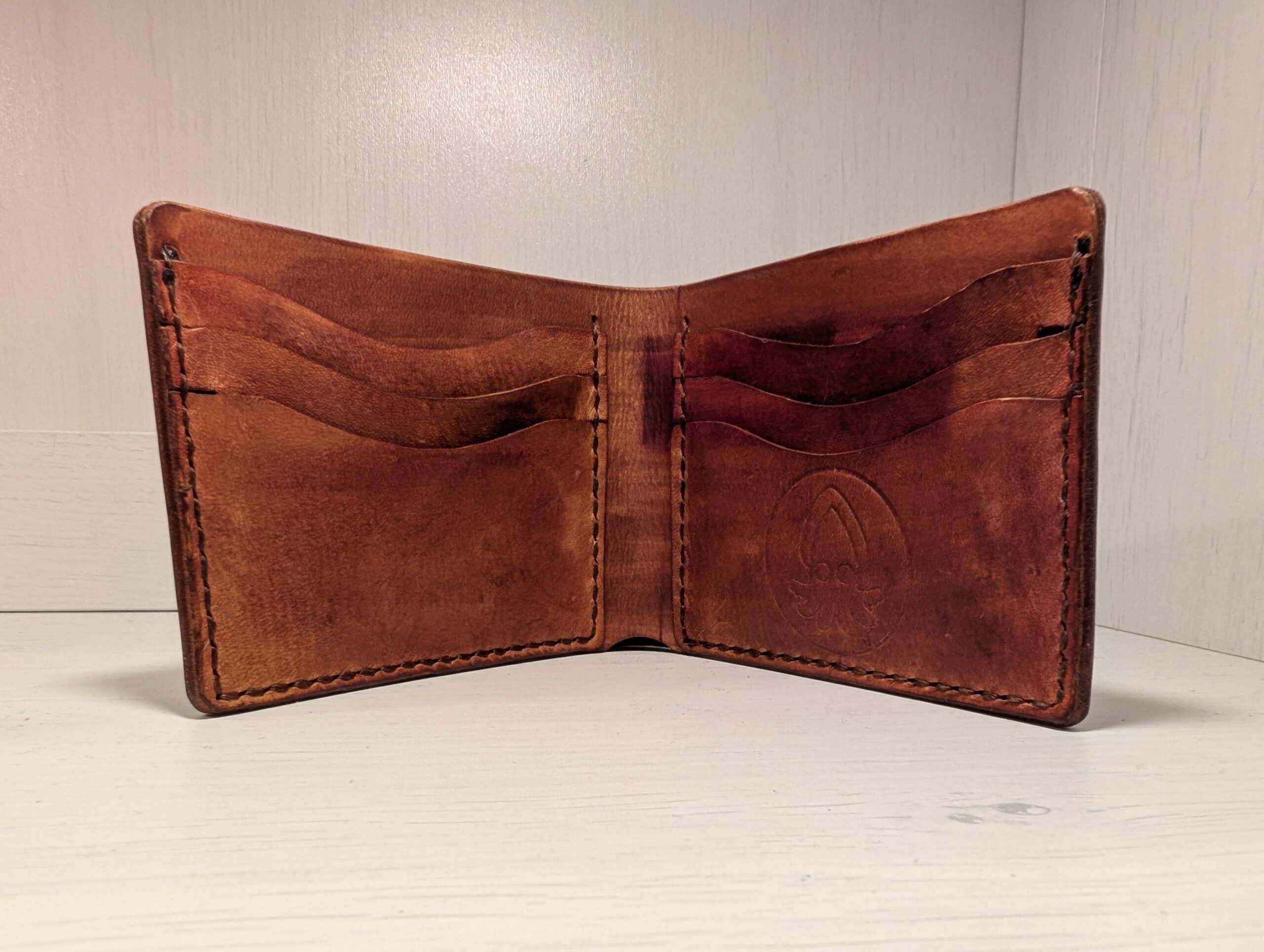 Beautifully made from hand coloured, 1.8mm, genuine veg tan leather and comes with a full length note pocket and six separate card slots